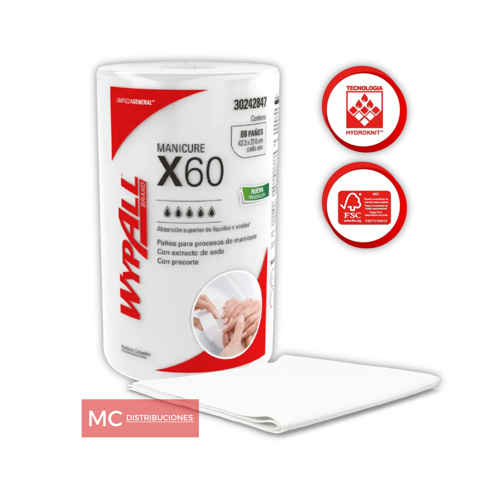 Los paños de limpieza WypAll X60 Rollo Manicure ofrecen una alta resistencia y absorción de aceites y líquidos livianos, son fabricados con extracto de seda para máxima suavidad.