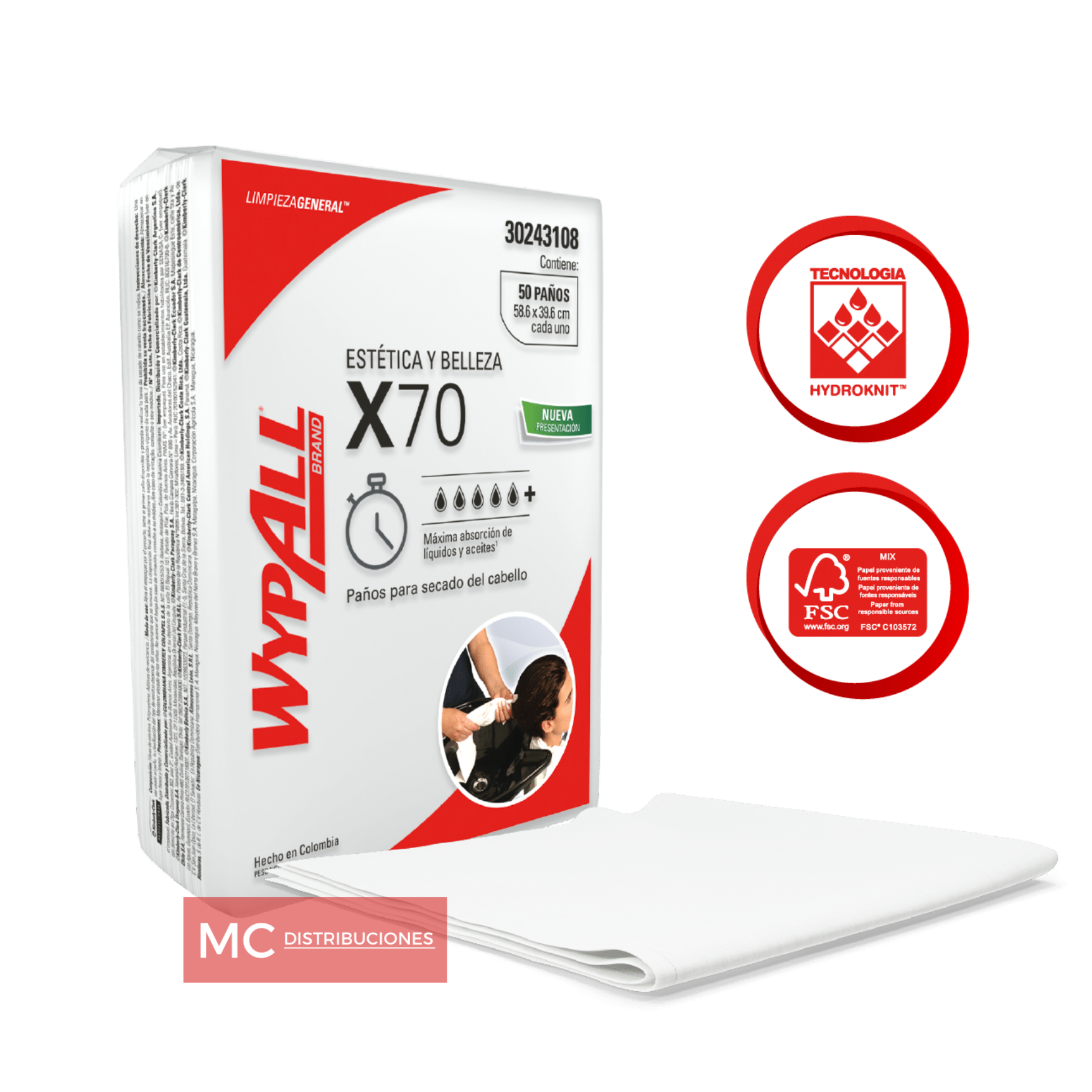 Cantidad de paños por paquete: 50 paños.